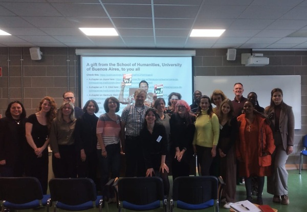 La prof. Lasa comparte propuestas consignadas en el libro Literatura y formación docente, del cual es editora y coautora. A su charla asistió el profesor Trevor O’Brien (margen derecho), que integra el Departamento de Psicología y Educación Inclusiva y especial y que en el año 2024 visitó la Facultad de Filosofía y Letras. En la foto pueden verse profesores de idioma provenientes de Estados Unidos, Holanda, Inglaterra, Bélgica, Francia, Alemania, Austria, Montenegro, Polonia y Tanzania.