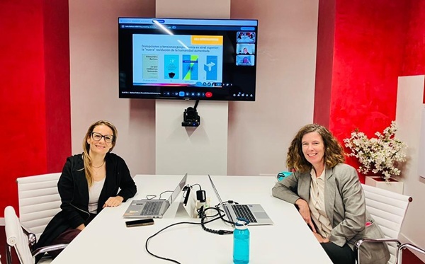 La prof. Fullone en el Conversatorio sobre escritura con IA con equipos de investigación de la Facultad de Educación de la UCM. A la derecha, Aoife Ahern, coordinadora de Lenguas Extranjeras.